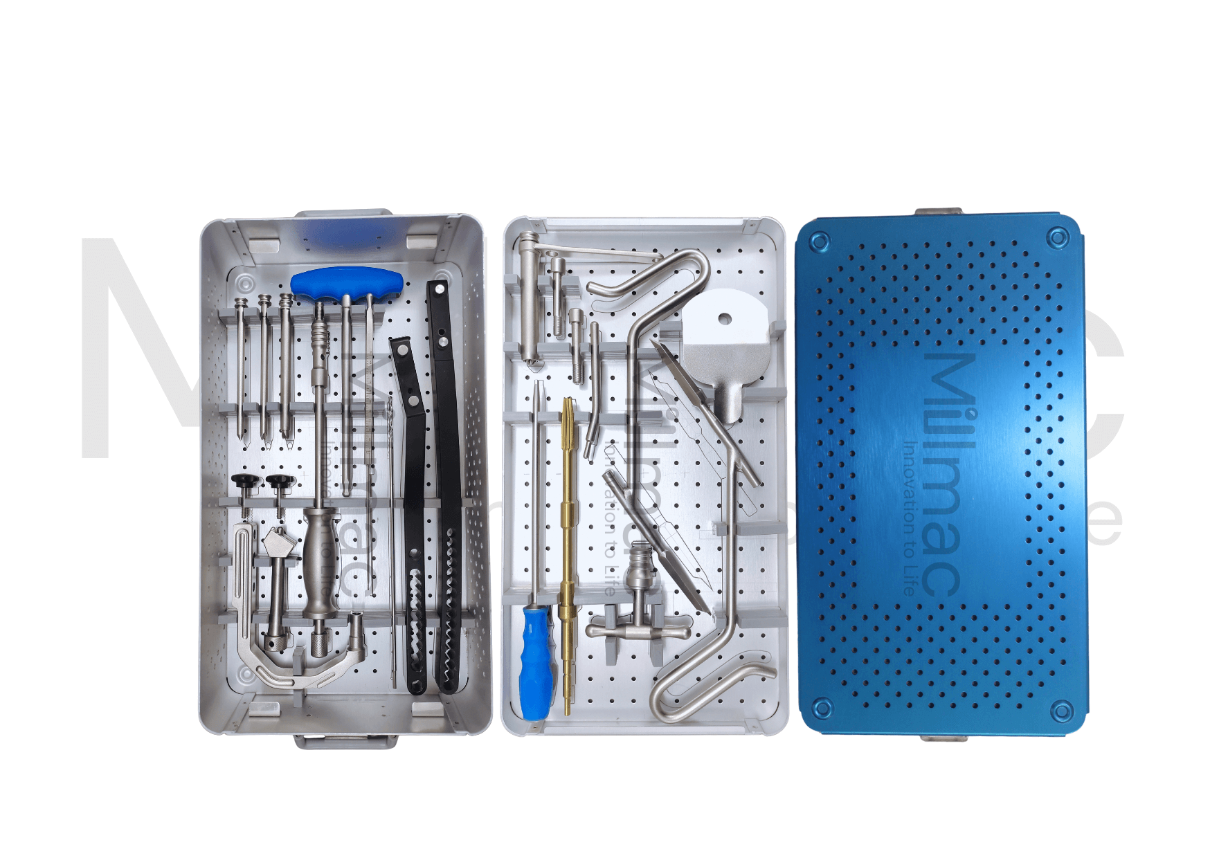 The Tibia-Femoral Nail Instrument Set is a comprehensive orthopedic surgical instrumentation system designed for accurate implantation of tibia and femoral intramedullary (IM) nail systems. Engineered for precision, durability, and surgical efficiency, this instrument set enables controlled nail insertion, accurate targeting, and secure proximal and distal locking for long bone fracture fixation.